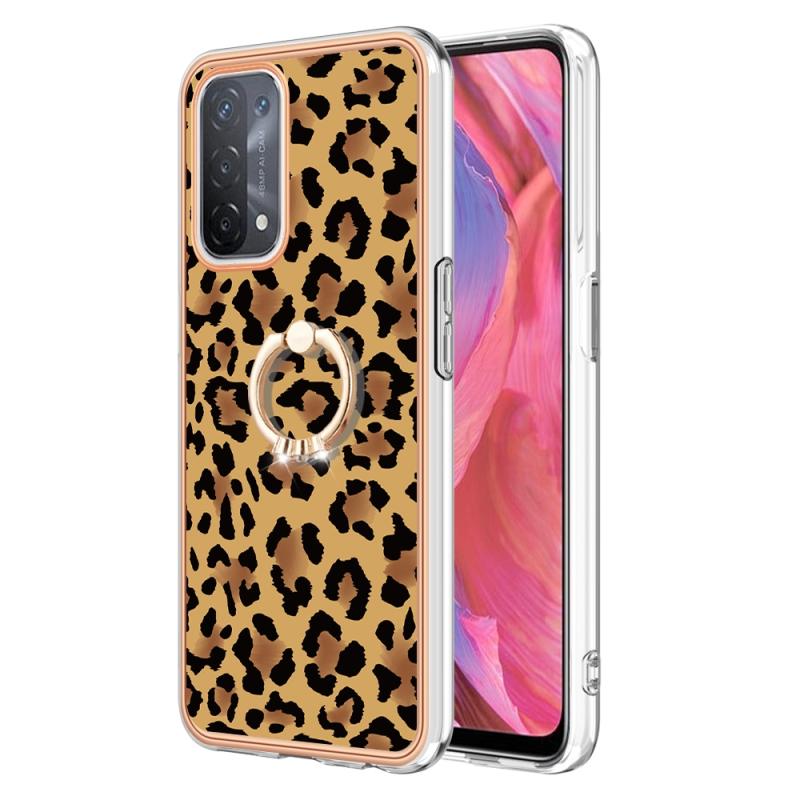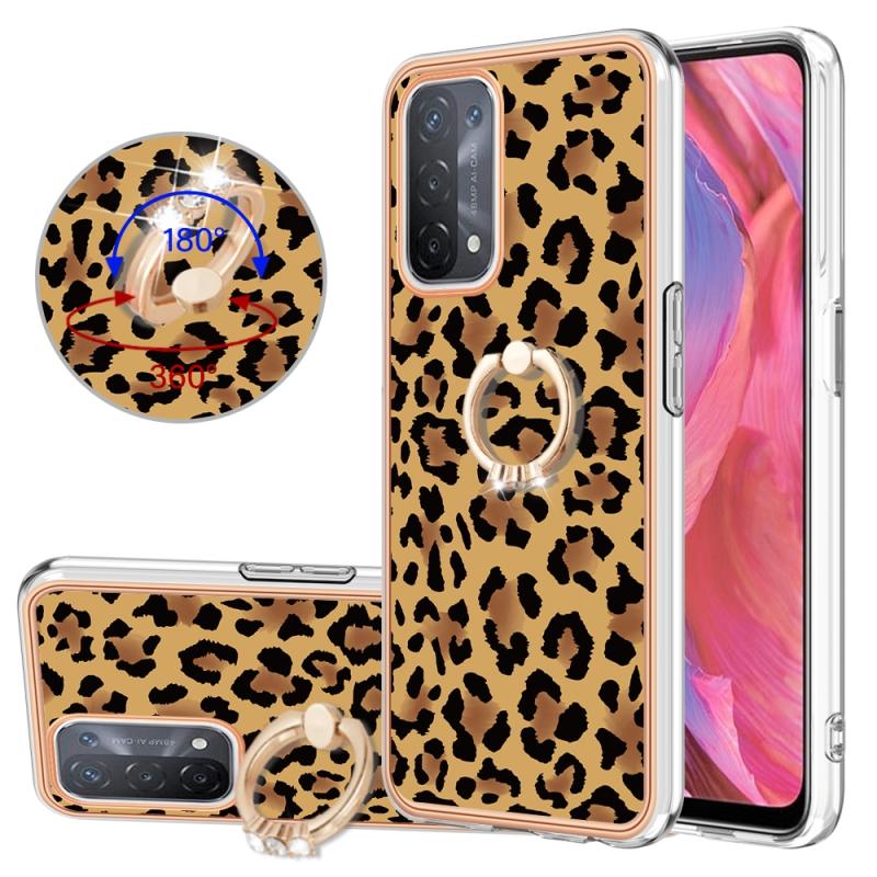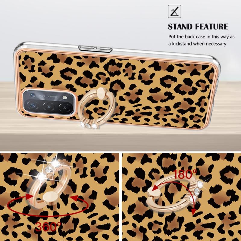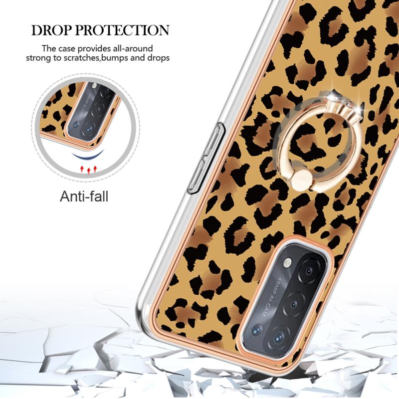 For OPPO A74 / A93 5G / A54 5G / A93s 5G Electroplating Dual-side IMD Phone Case with Ring Holder(Leopard Print)