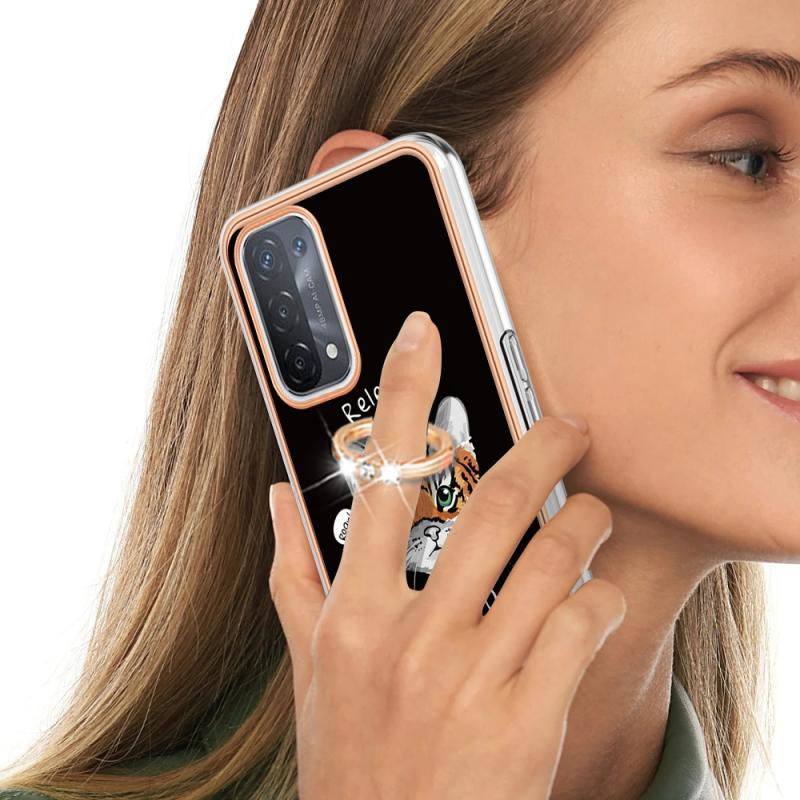 For OPPO A74 / A93 5G / A54 5G / A93s 5G Electroplating Dual-side IMD Phone Case with Ring Holder(Natural Growth)