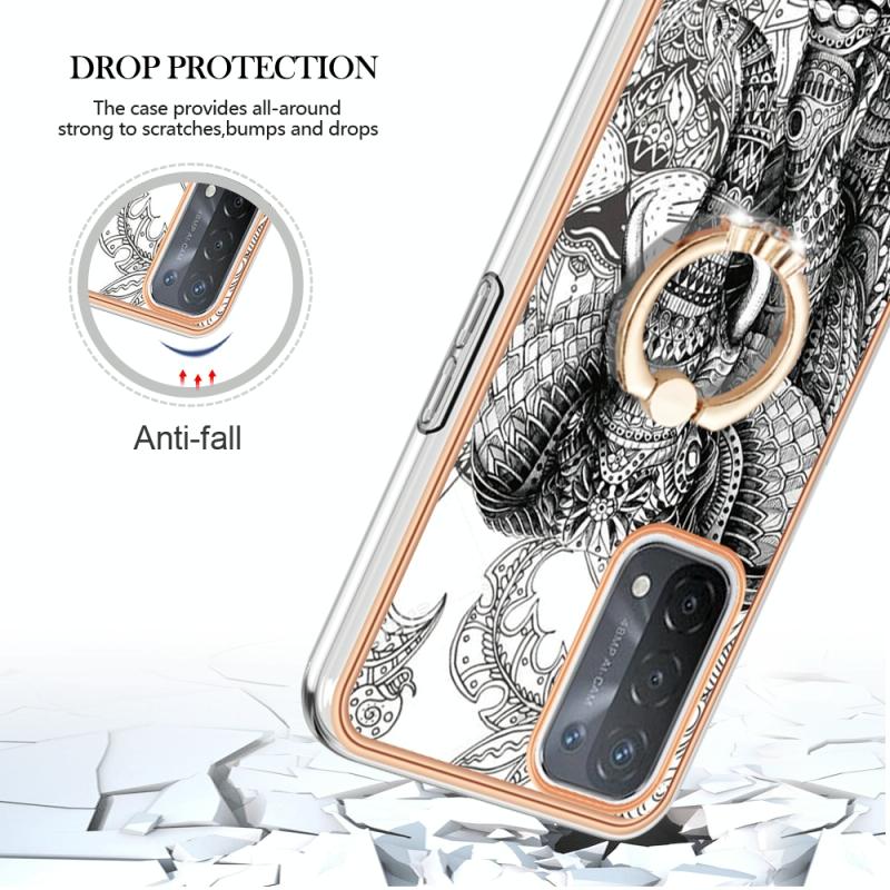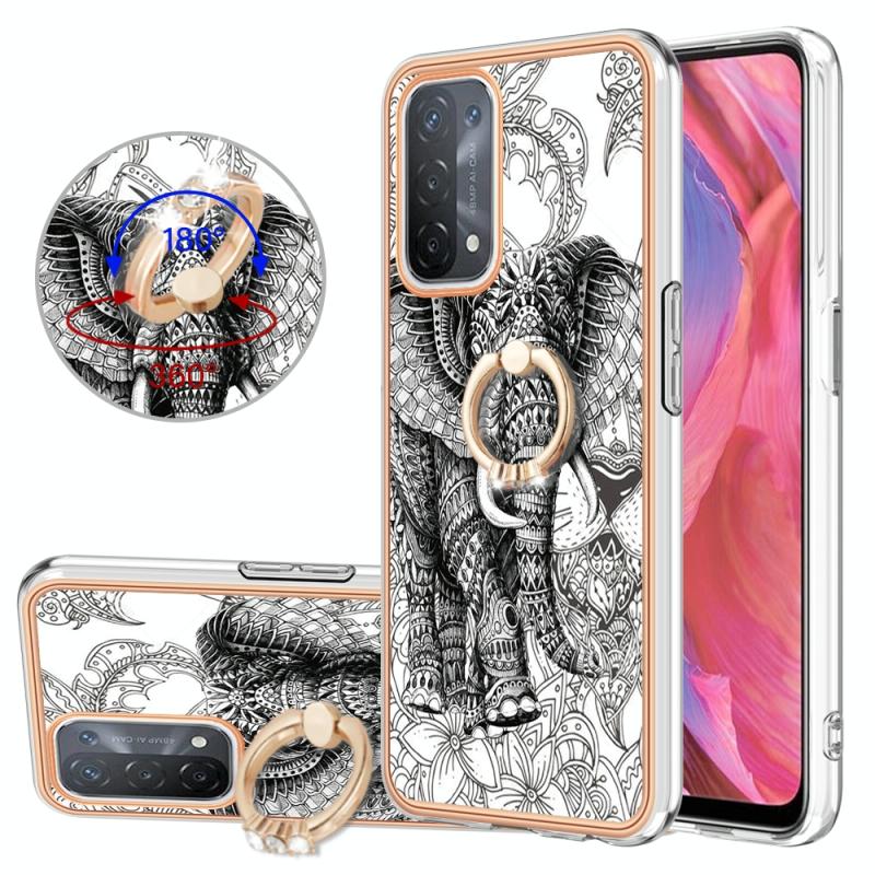 For OPPO A74 / A93 5G / A54 5G / A93s 5G Electroplating Dual-side IMD Phone Case with Ring Holder(Totem Elephant)