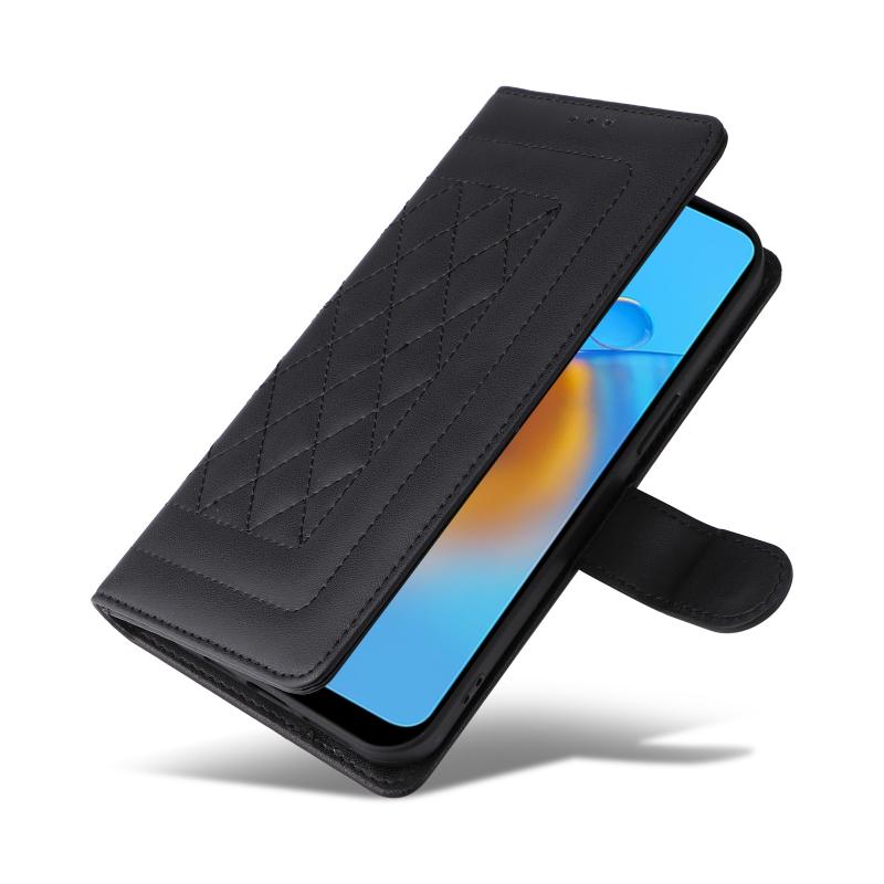For OPPO A74 / A95 4G / F19 Diamond Lattice Leather Flip Phone Case(Black)