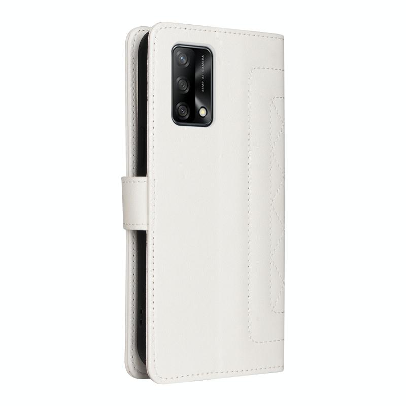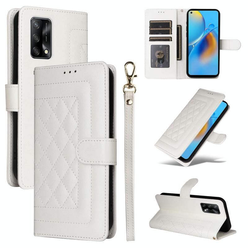 For OPPO A74 / A95 4G / F19 Diamond Lattice Leather Flip Phone Case(White)