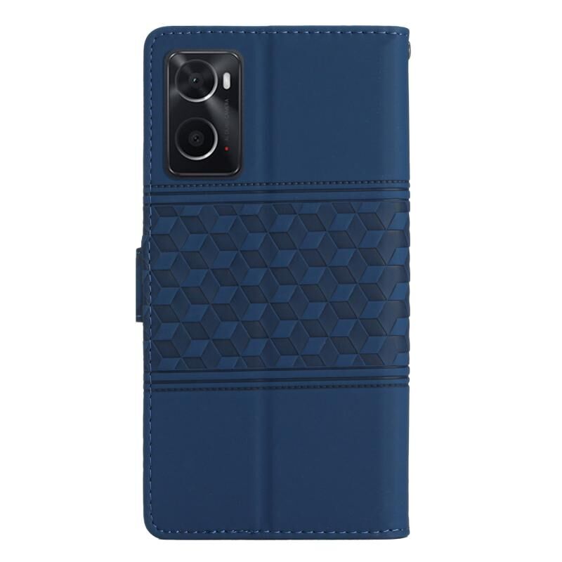 Για OPPO A76 / A36 / A96 Diamond ανάγλυφο δέρμα αίσθηση δερμάτινη θήκη τηλεφώνου με κορδόνι (σκούρο μπλε)