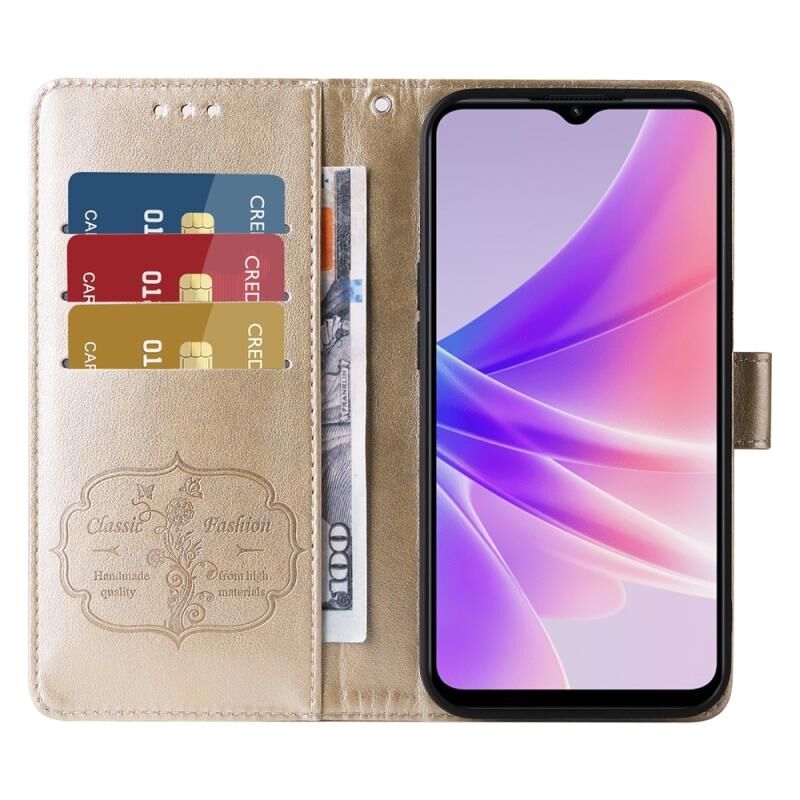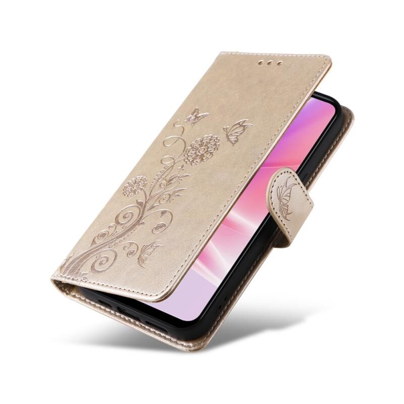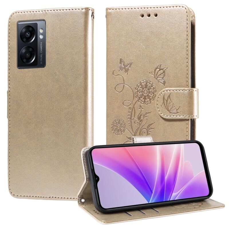 Θήκη τηλεφώνου από δέρμα με ανάγλυφα σχέδια πεταλούδας και λουλουδιών για OPPO A77 4G / 5G / A77s 4G (Μωβ)