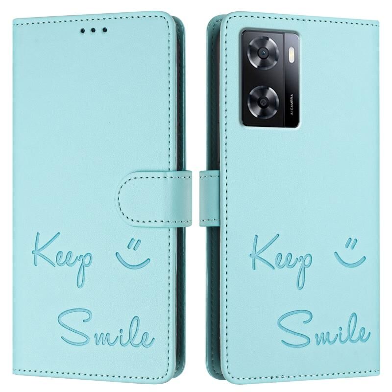 Για OPPO A77 4G / A77s 4G Χαμόγελο ανάγλυφο RFID δερμάτινη θήκη τηλεφώνου (πράσινο μέντα)
