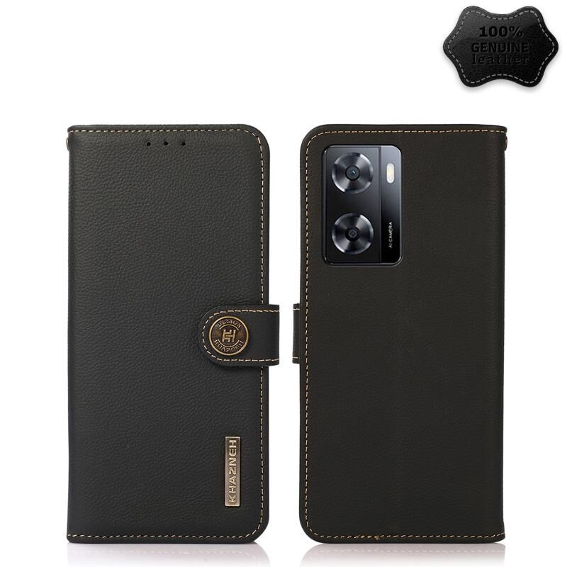 Θήκη τηλεφώνου από γνήσιο δέρμα RFID για OPPO A77 4G JP Version/A57 4G KHAZNEH Custer (Μαύρο)