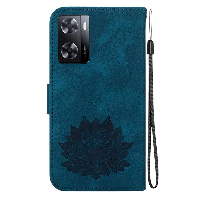 For OPPO A77 5G / A77 4G / A77s / K10 5G Lotus Embossed Leather Phone Case(Dark Blue)
