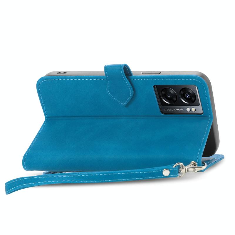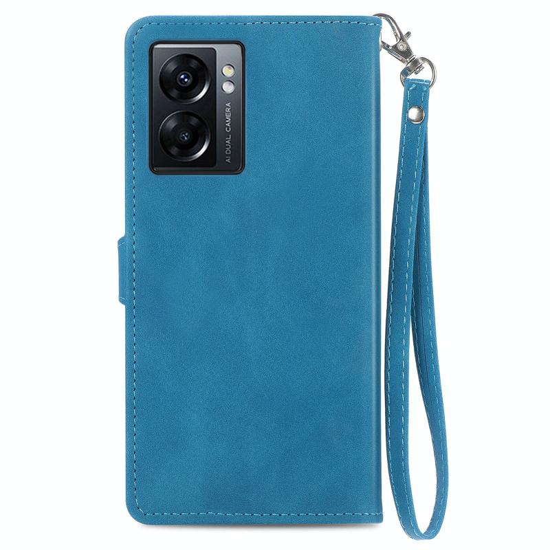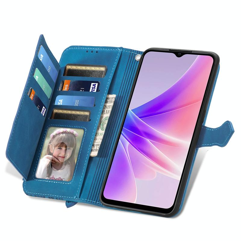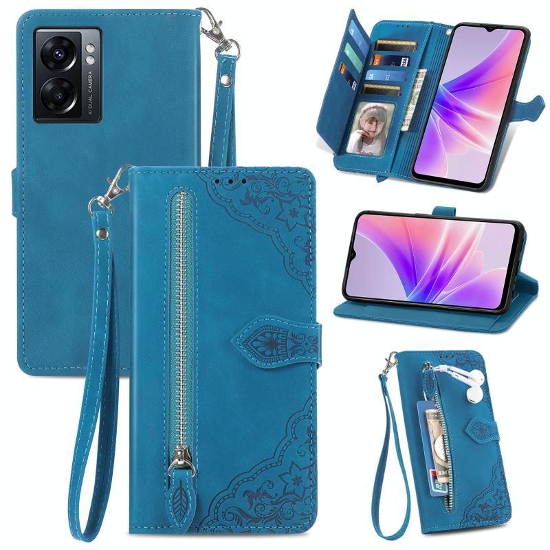 Θήκη τηλεφώνου από δέρμα με ανάγλυφα λουλούδια και φερμουάρ για OPPO A77 (Μπλε)