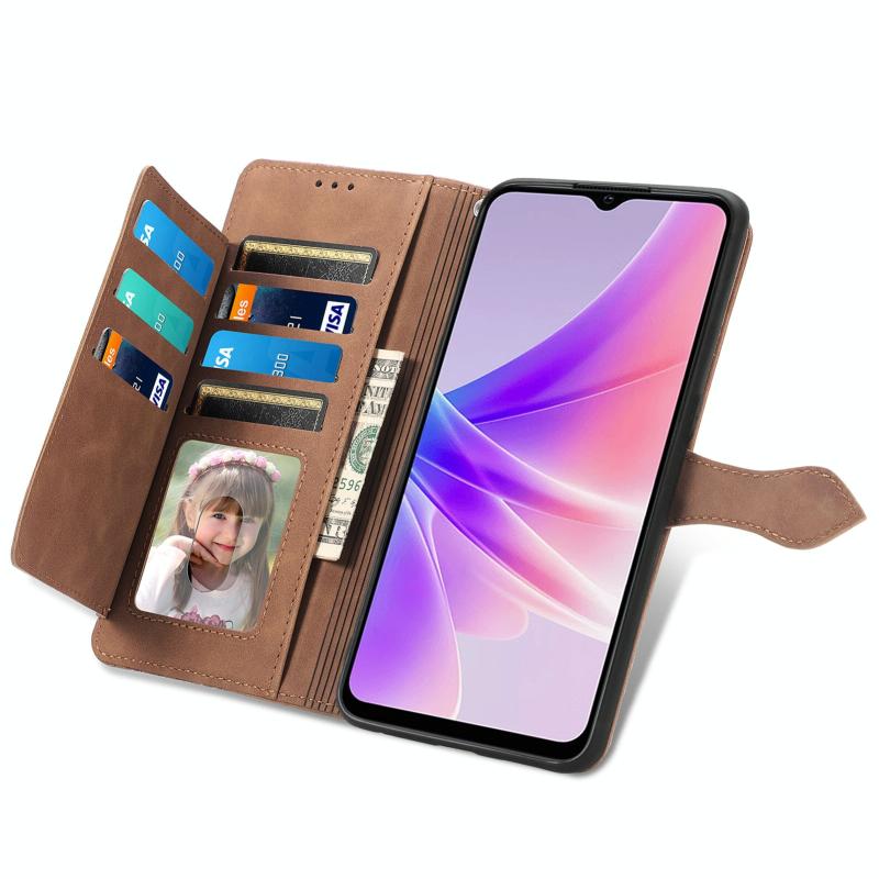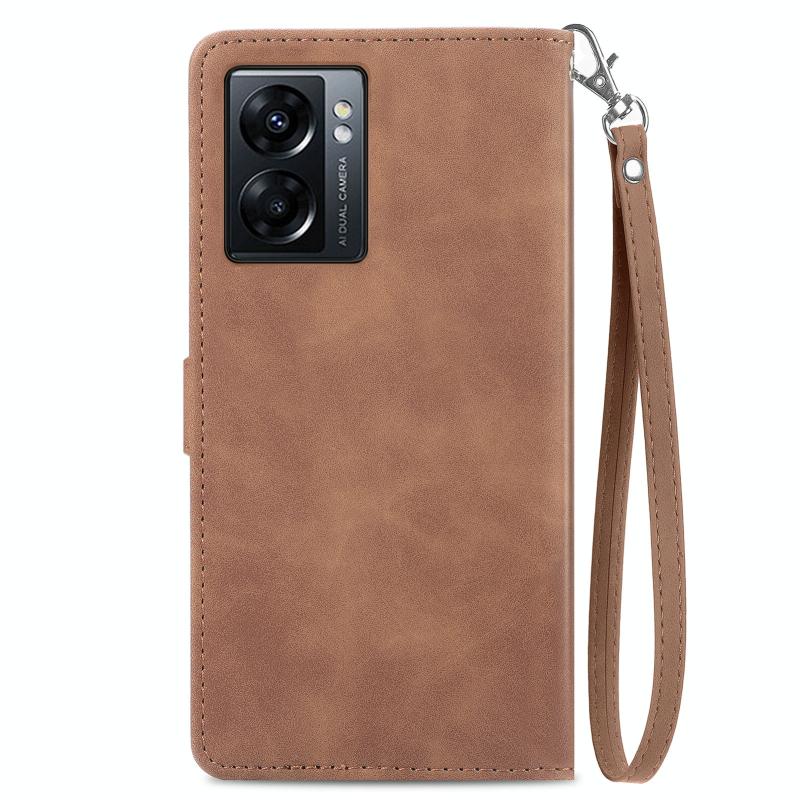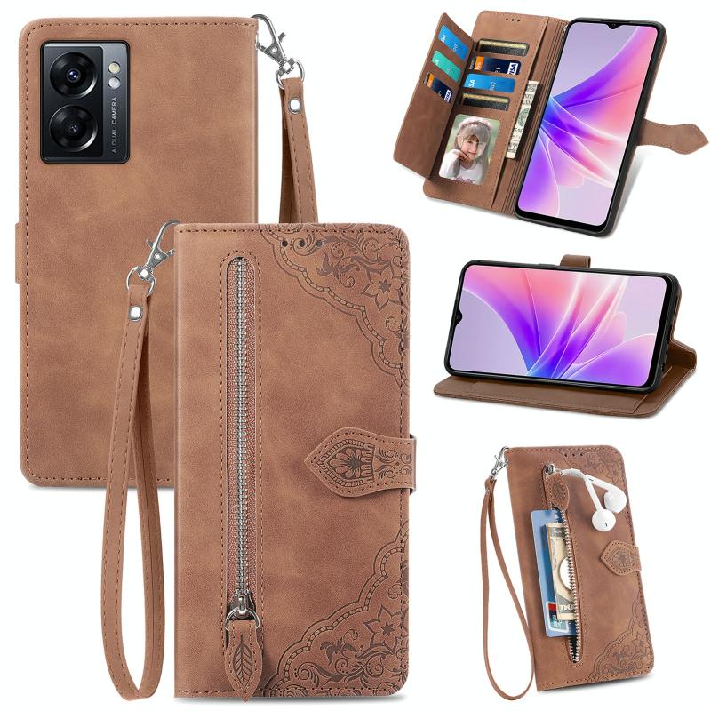 Θήκη τηλεφώνου από δέρμα με ανάγλυφα λουλούδια και φερμουάρ για OPPO A77 (Καφέ)