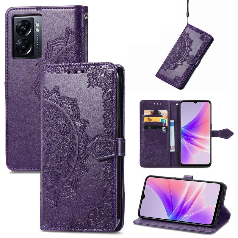 Για OPPO A77 Mandala λουλούδι ανάγλυφο δερμάτινη θήκη τηλεφώνου (μωβ)