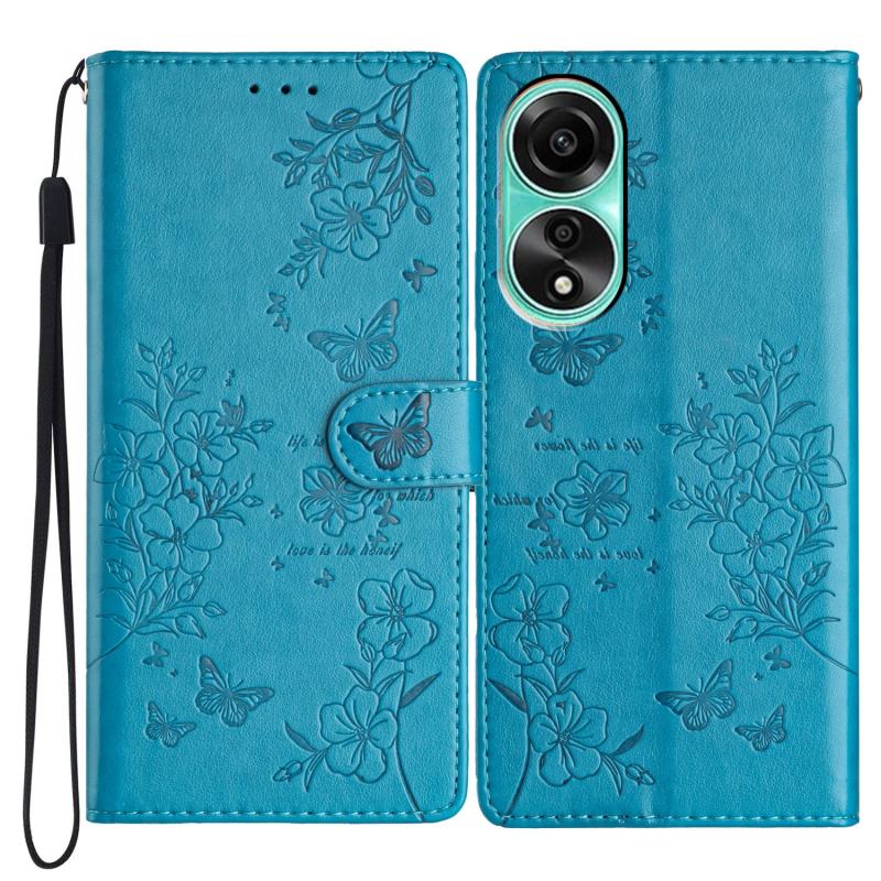For OPPO A78 4G Butterflies and Flowers Leather Phone Case(Blue)