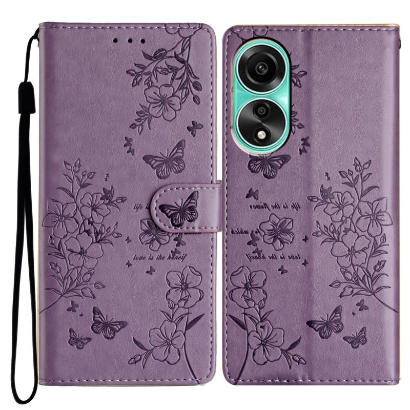 For OPPO A78 4G Butterflies and Flowers Leather Phone Case(Purple)