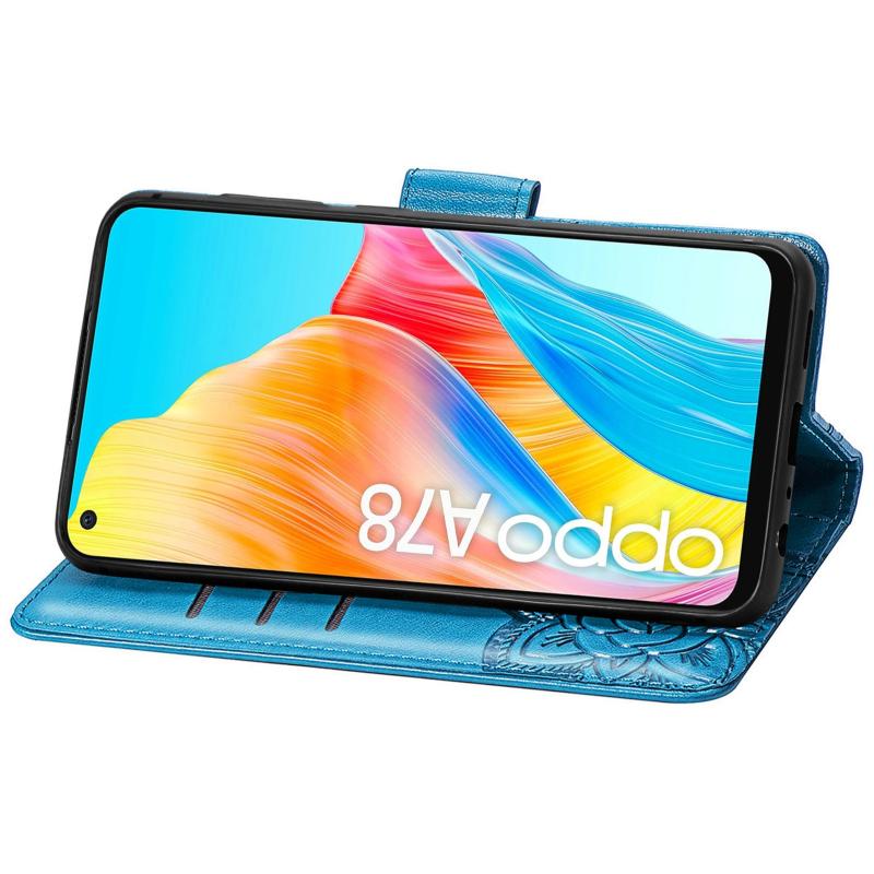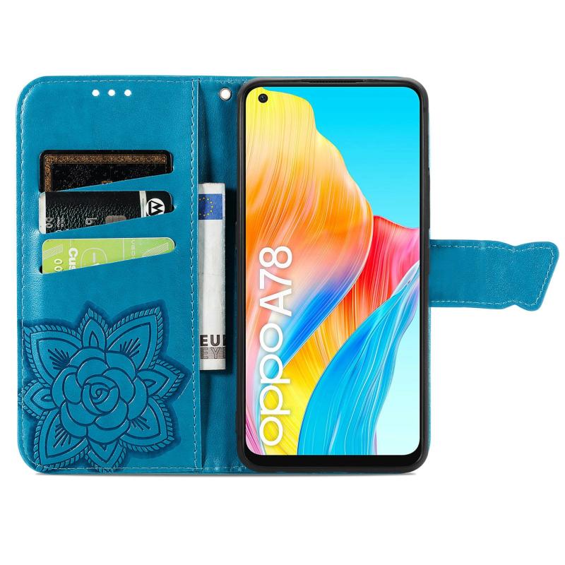 For OPPO A78 4G Butterfly Love Flower Embossed Leather Phone Case(Blue)