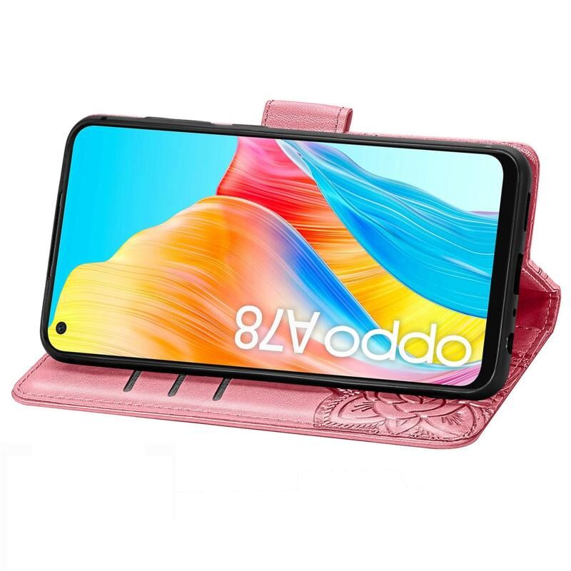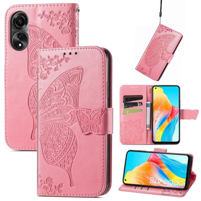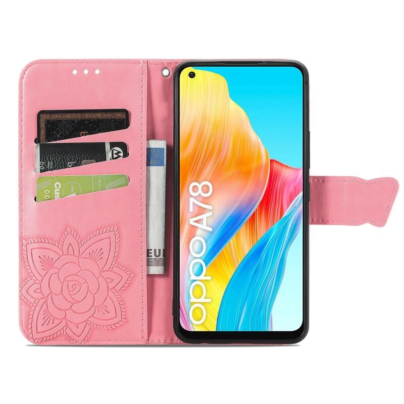 Θήκη τηλεφώνου από δέρμα με ανάγλυφο σχέδιο πεταλούδας και λουλουδιών για OPPO A78 4G (ρόζ)