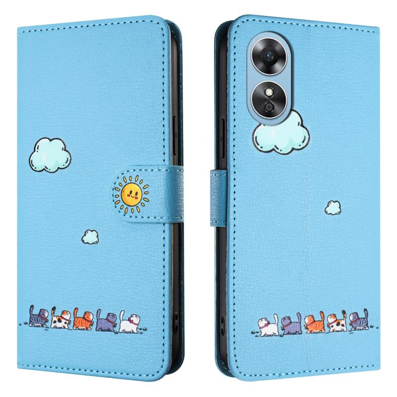 For OPPO A78 4G Cartoon Cats Leather Phone Case(Blue)