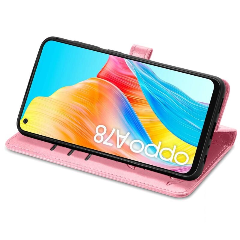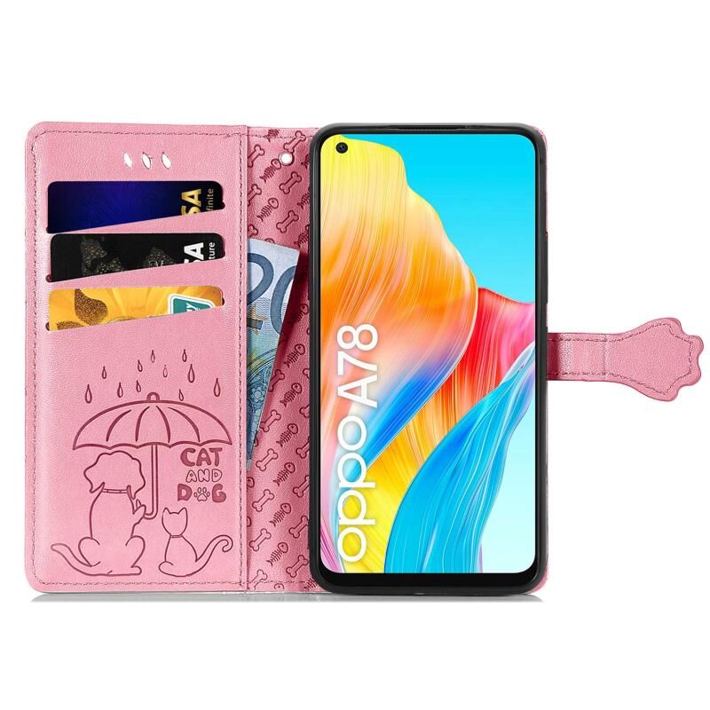 Θήκη τηλεφώνου από δέρμα με ανάγλυφο σχέδιο γάτας και σκύλου για OPPO A78 4G (ρόζ)