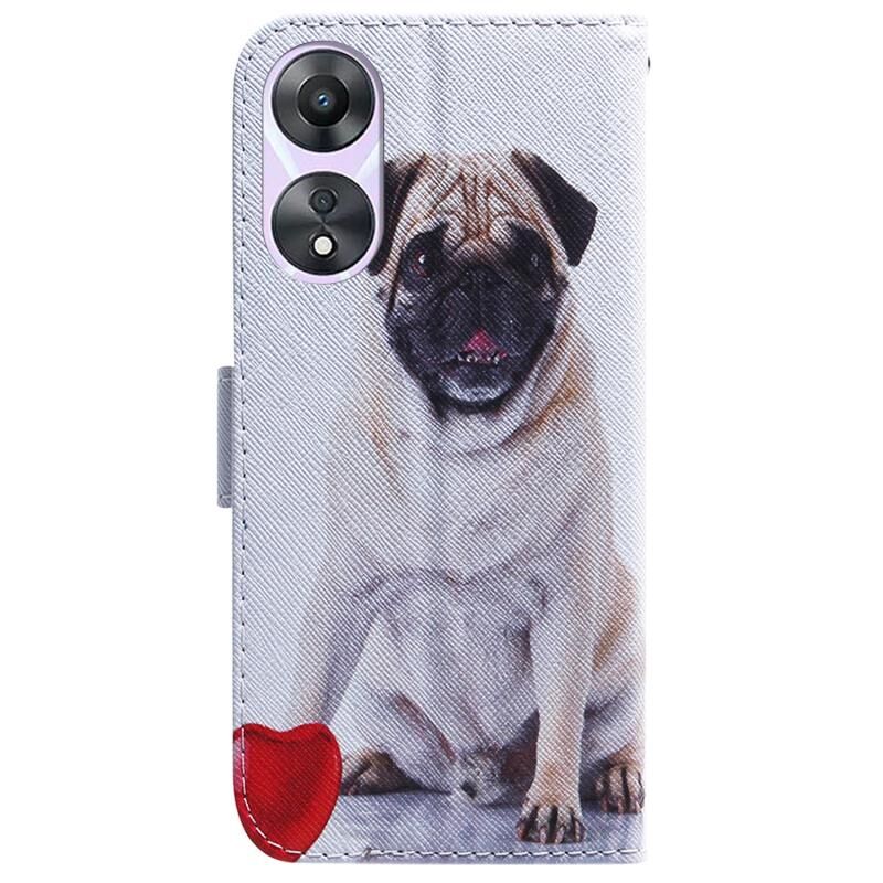 Θήκη τηλεφώνου από δέρμα με σχέδιο (Pug) για OPPO A78 4G, πολύχρωμη, τύπου flip.