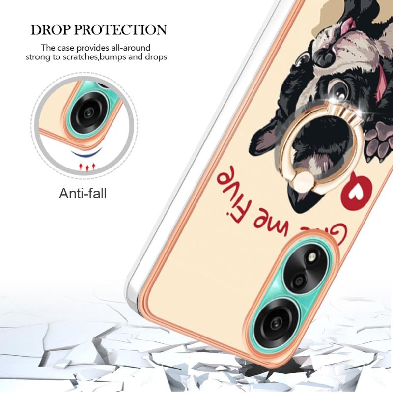 Θήκη τηλεφώνου με δακτύλιο στήριξης για OPPO A78 4G, με ηλεκτρολυτική επιμετάλλωση και IMD διπλής όψης (Lucky Dog)