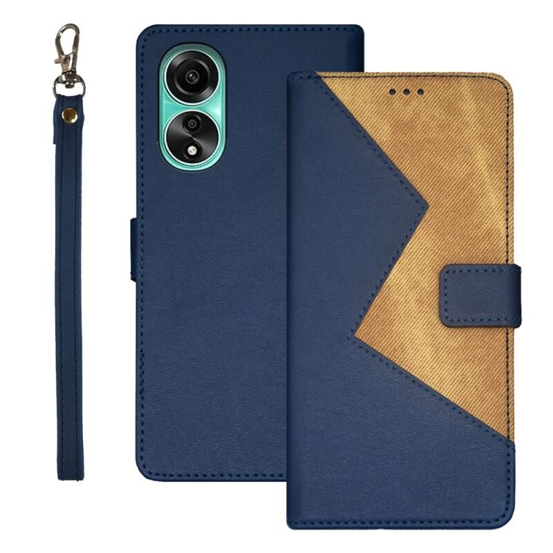Για OPPO A78 4G Foreign idewei Δερμάτινη Θήκη Τηλεφώνου Διχρωμίας (Μπλε) (idewei)