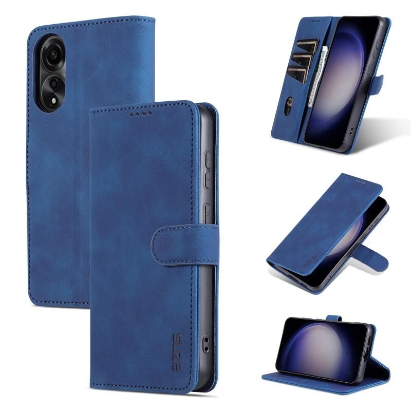 Θήκη τηλεφώνου από δέρμα με υφή μοσχαριού, τύπου flip, για OPPO A78 4G Global AZNS (Καφέ) (Μπλε)