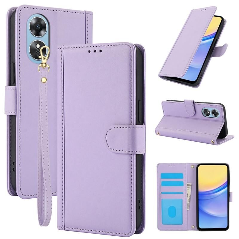 Για OPPO A78 4G Global Skin Feel Pure Color Card Slots δερμάτινη θήκη τηλεφώνου με διπλό κορδόνι (μωβ)