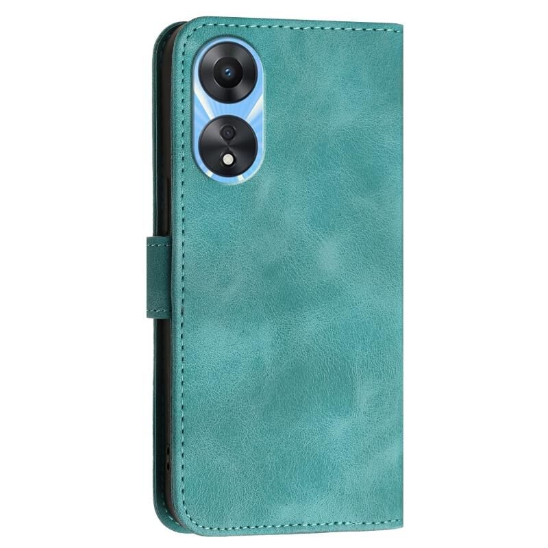 Θήκη τηλεφώνου δερμάτινη με ανάγλυφο σχέδιο πλέγματος και πεταλούδας για OPPO A78 4G με κορδόνι (Σκούρο Μπλε)