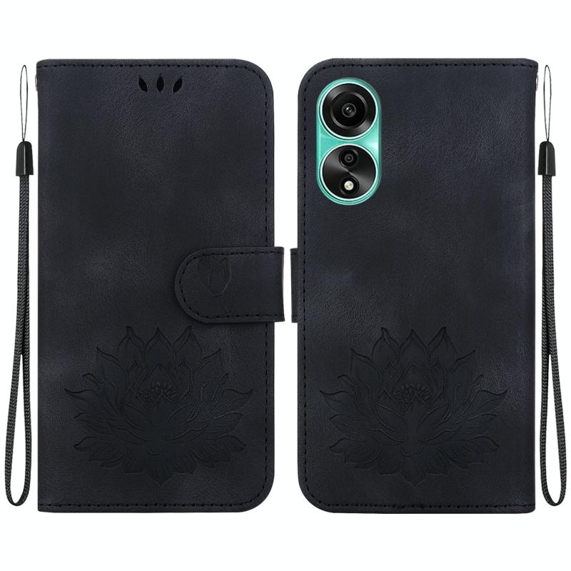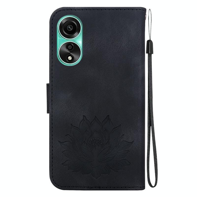 For OPPO A78 4G Lotus Embossed Leather Phone Case(Black)