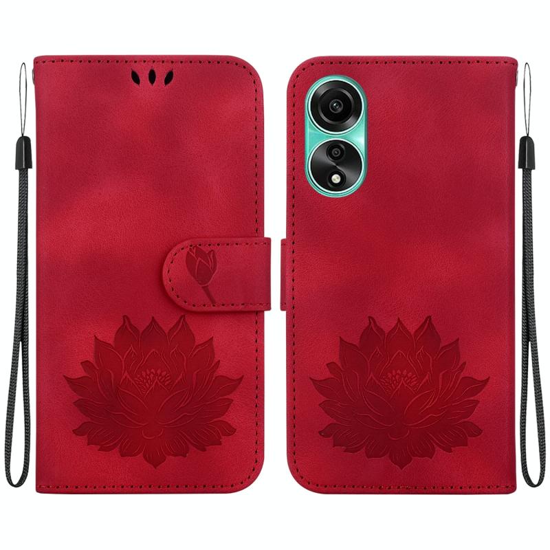 For OPPO A78 4G Lotus Embossed Leather Phone Case(Red)