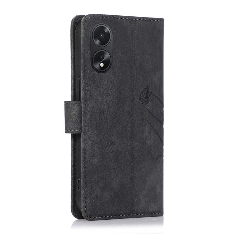 Θήκη τηλεφώνου από δέρμα με ανάγλυφο σχέδιο ορχιδέας και πεταλούδας για OPPO A78 4G (Μαύρο)
