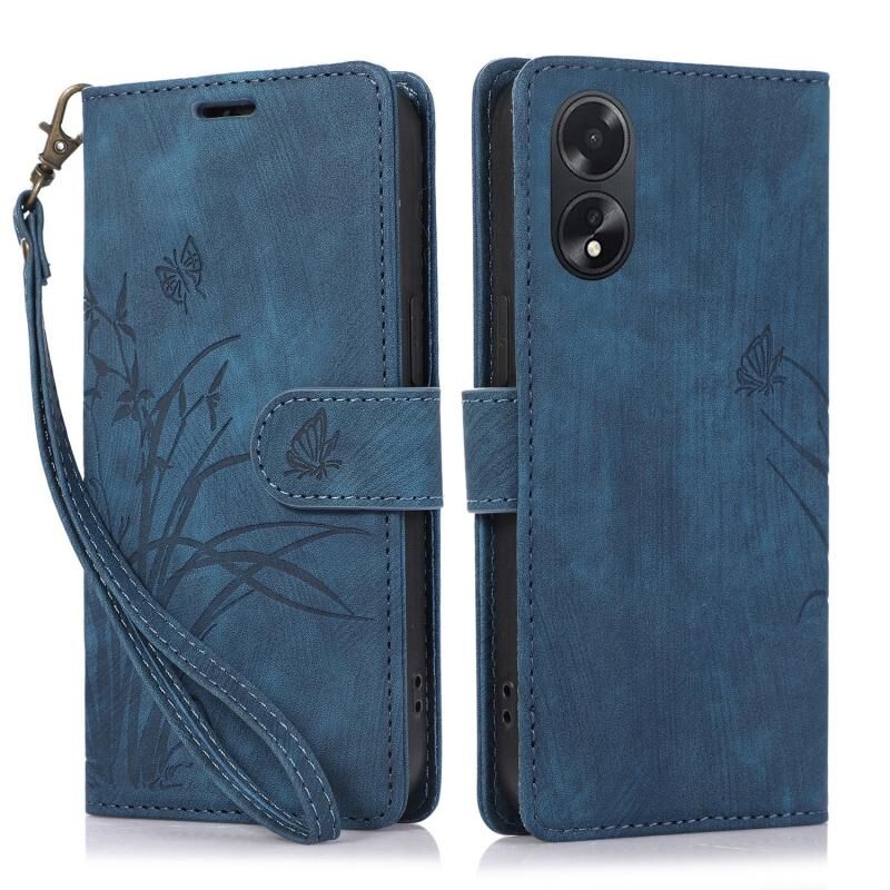 Θήκη τηλεφώνου από δέρμα με ανάγλυφο σχέδιο ορχιδέας και πεταλούδας για OPPO A78 4G (Μαύρο)