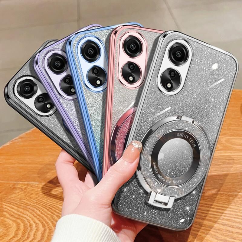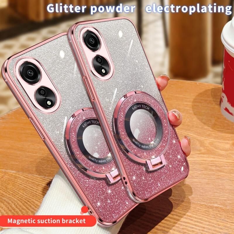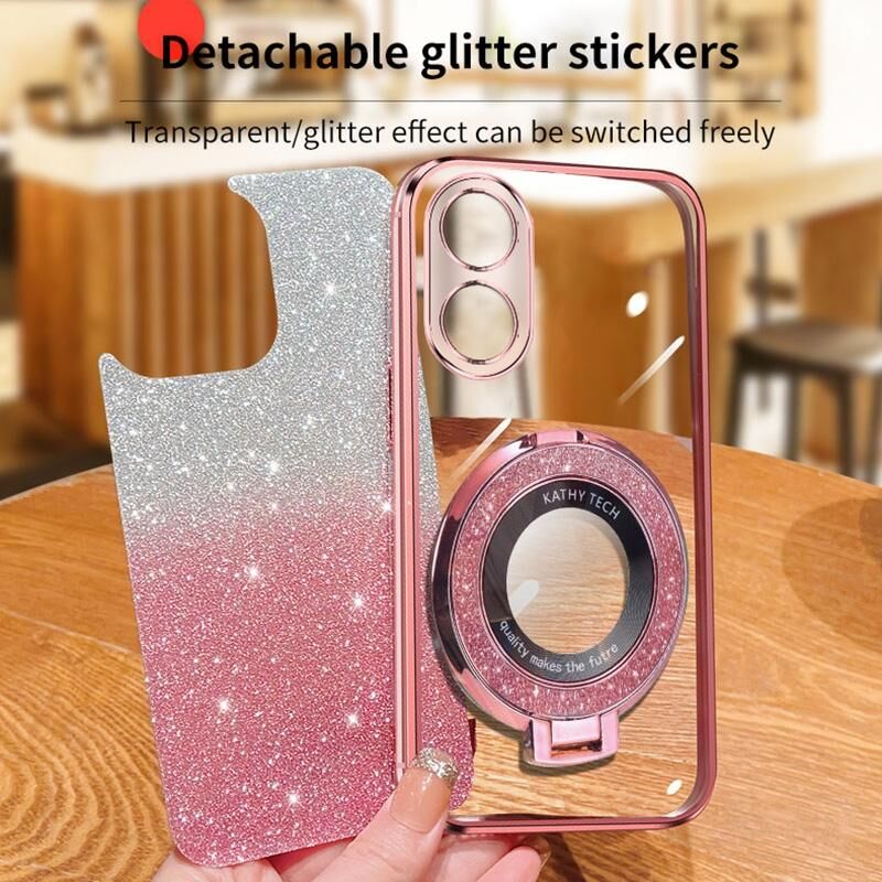 Θήκη τηλεφώνου TPU με στρογγυλό στήριγμα, επιμετάλλωση με διαβαθμισμένη λάμψη για OPPO A78 4G (Ροζ)