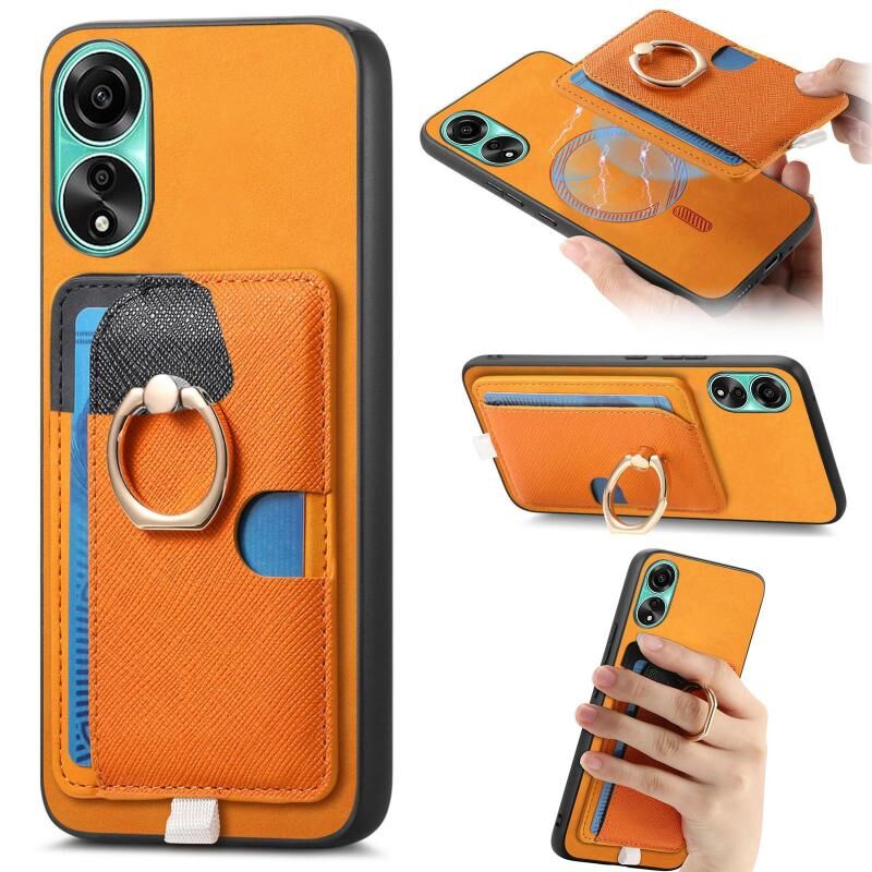 Θήκη τηλεφώνου MagSafe για OPPO A78 4G, Ρετρό Δερμάτινη με Σταυρωτό Σχέδιο και Θήκη Κάρτας στο Πλαϊνό Μέρος (Μωβ)