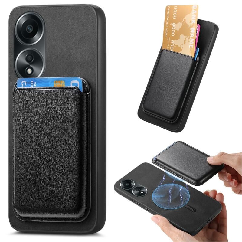 Για OPPO A78 4G Ρετρό Θήκη Κάρτας MagSafe PU (Μαύρο)