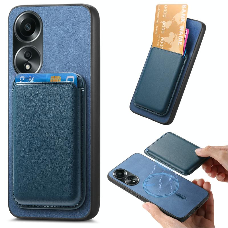 Για OPPO A78 4G Ρετρό Θήκη Κάρτας MagSafe PU (Μπλε)