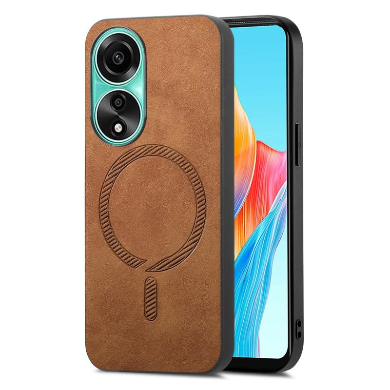 For OPPO A78 4G Retro Magsafe Magnetic PU Back Cover Phone Case(Brown)