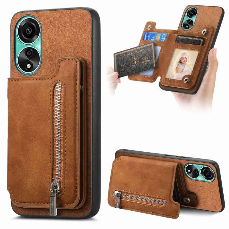 For OPPO A78 4G Retro MagSafe Zipper Wallet Card Bag Back Phone Case(Brown)