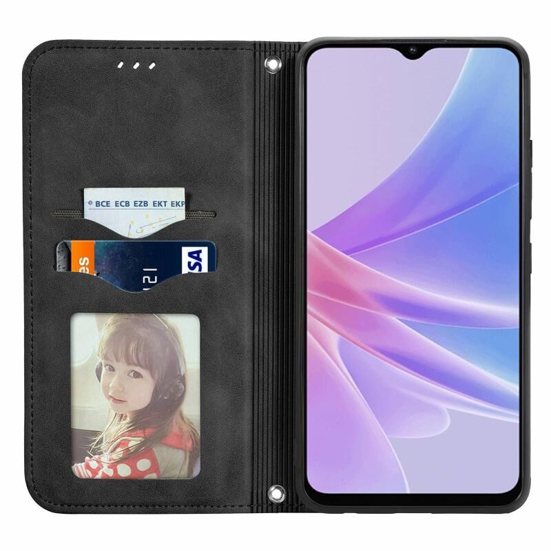 Για OPPO A78 4G Δερμάτινη Θήκη Flip με Μαγνητικό Κλείσιμο & Αίσθηση Δέρματος (Μαύρο)