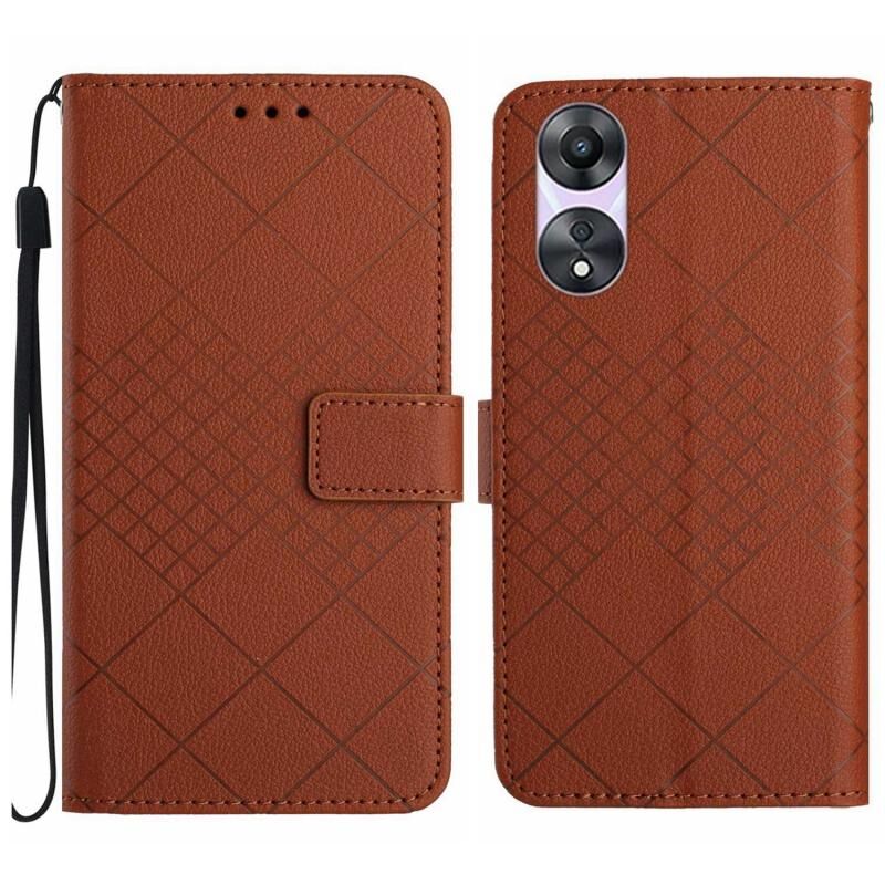 Για OPPO A78 4G Rhombic Grid Υφή δερμάτινη θήκη τηλεφώνου (καφέ)