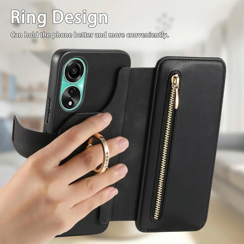 For OPPO A78 4G Ring Zipper Wallet RFID Blocking MagSafe Leather Phone Case(Black)