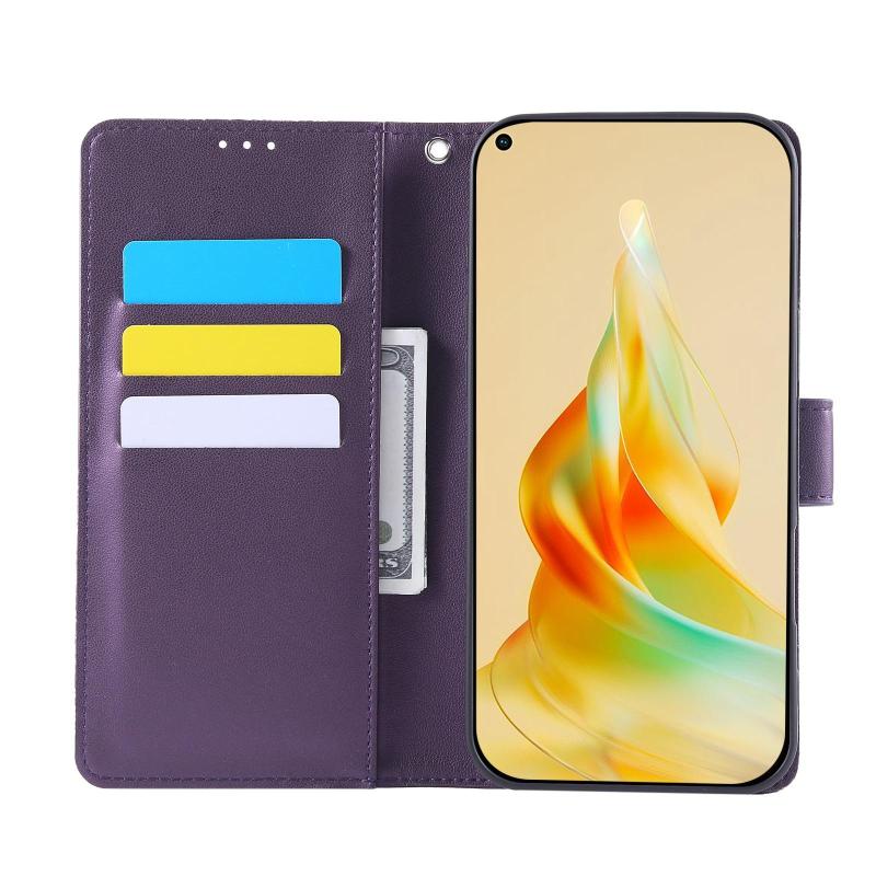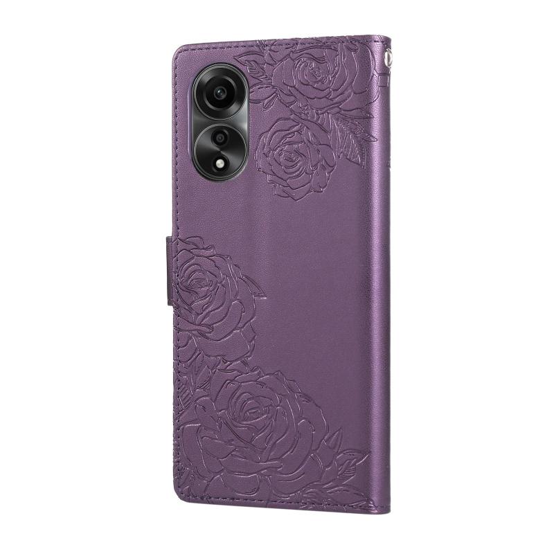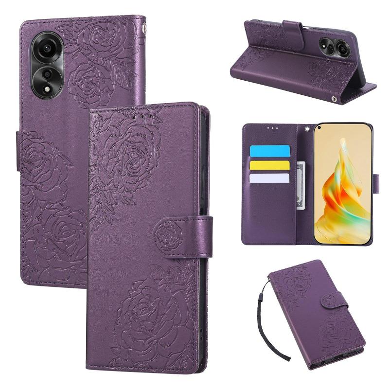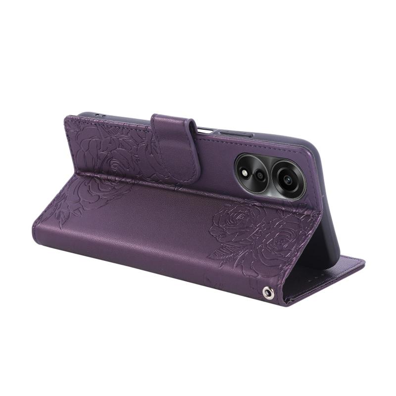 For OPPO A78 4G Rose Flower Embossed 3-Card Slots Leather Phone Case(Deep Purple)