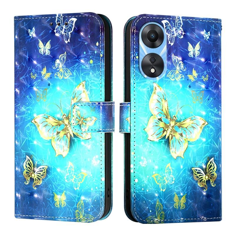 Θήκη τηλεφώνου από δέρμα με οριζόντιο άνοιγμα και τρισδιάστατη ζωγραφική για OPPO A78 5G / A1x 5G (Χρυσή Πεταλούδα)
