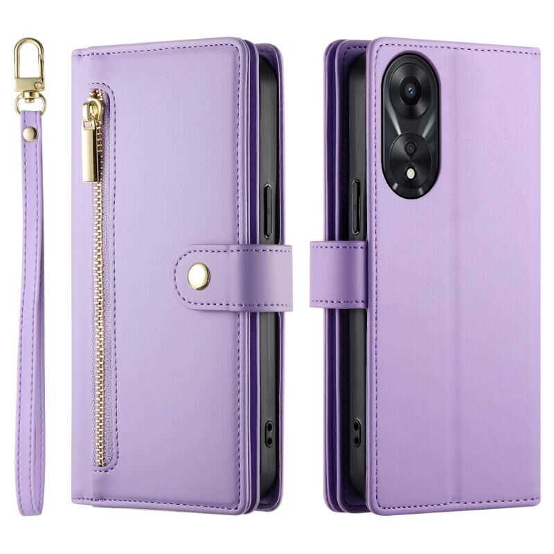 Για OPPO A78 5G / A58 5G / A58x / A1x Nine Card-slot φερμουάρ πορτοφόλι τσάντα δερμάτινη θήκη τηλεφώνου (μωβ)