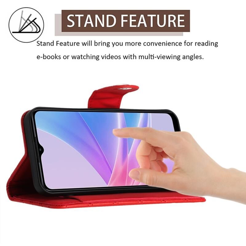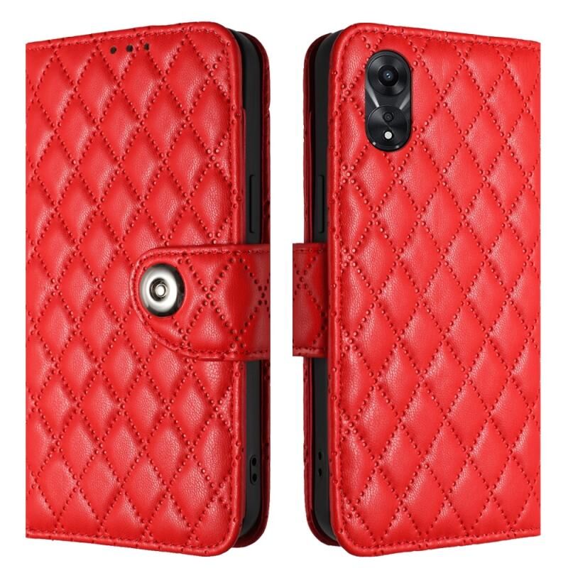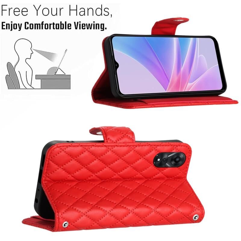 Για OPPO A78 5G / A58 5G Rhombic υφή Flip δερμάτινη θήκη τηλεφώνου με κορδόνι (κόκκινο)