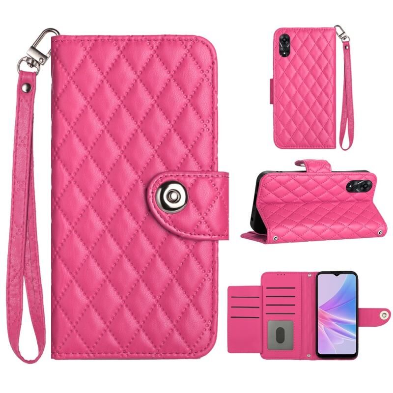 Για OPPO A78 5G / A58 5G Rhombic υφή Flip δερμάτινη θήκη τηλεφώνου με κορδόνι (Rose Red)