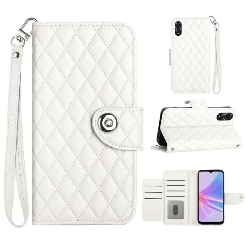 Για OPPO A78 5G / A58 5G Rhombic υφή Flip δερμάτινη θήκη τηλεφώνου με κορδόνι (λευκό)