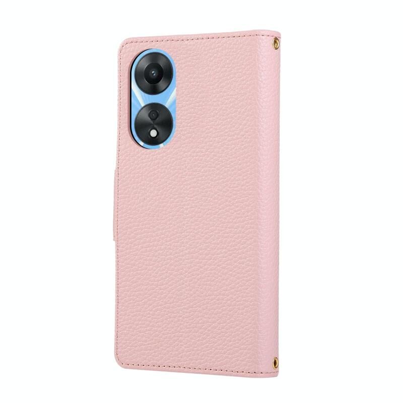 For OPPO A78 5G / A58 5G Round Buckle Zipper Wallet Leather Phone Case with Crossbody Strap(Pink)