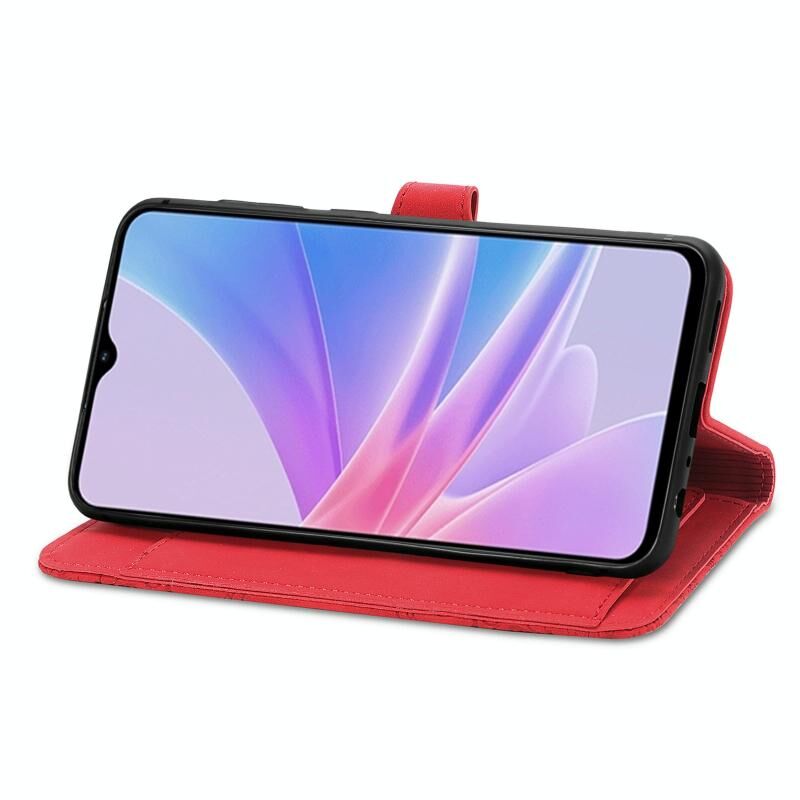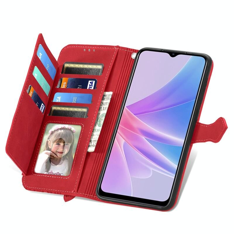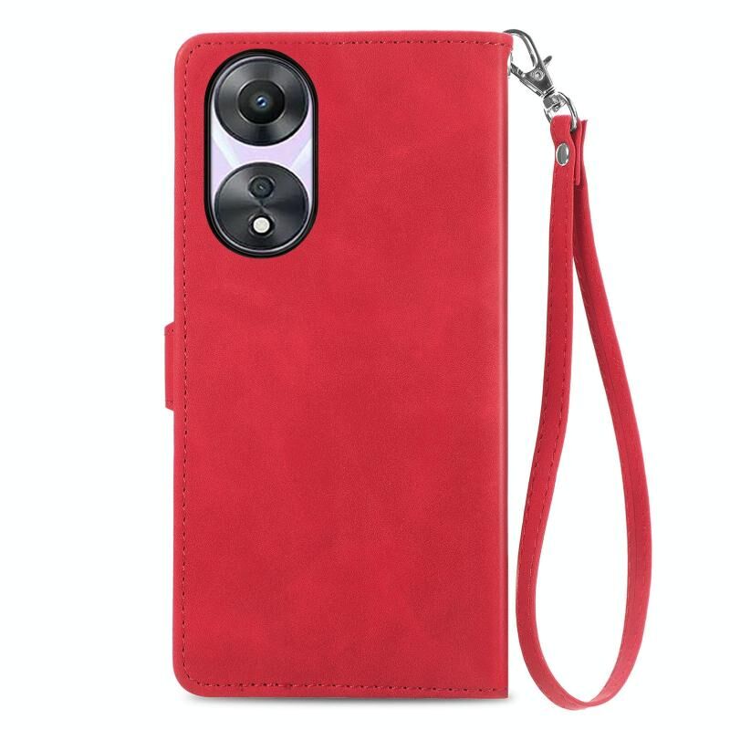 Για OPPO A78 5G ανάγλυφο λουλούδι φερμουάρ δερμάτινη θήκη τηλεφώνου (κόκκινο)