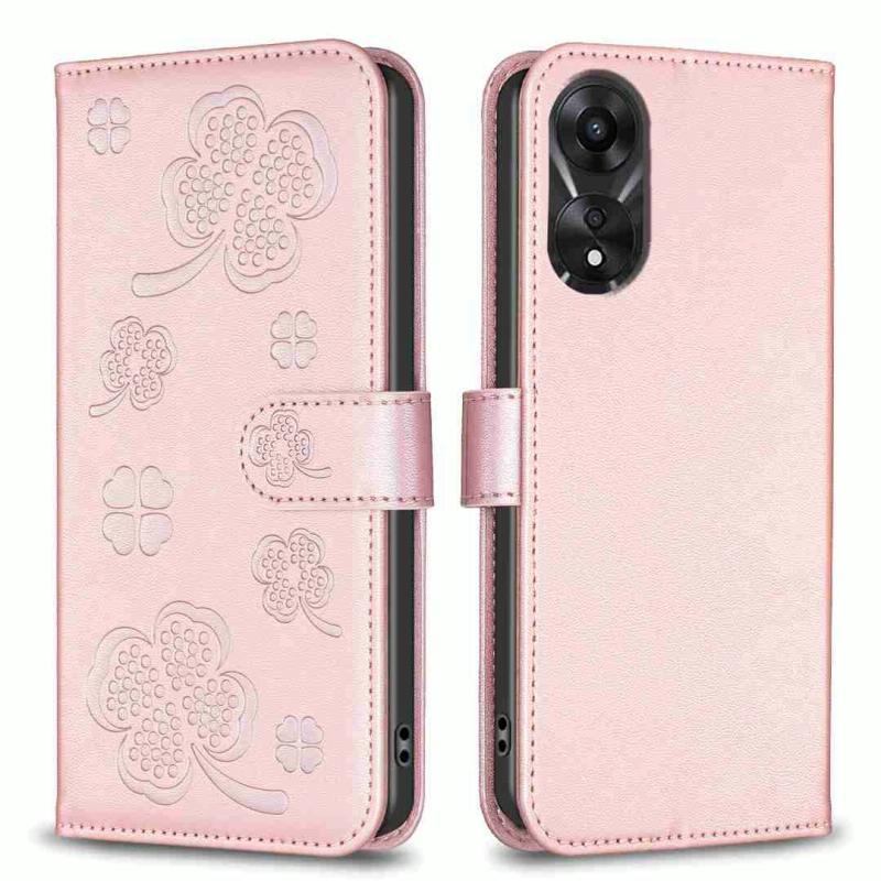 For OPPO A78 5G Four-leaf Embossed Leather Phone Case(Pink)
