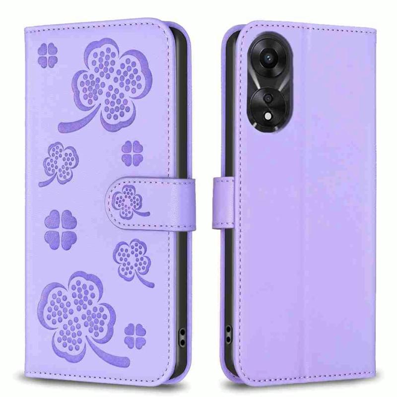 For OPPO A78 5G Four-leaf Embossed Leather Phone Case(Purple)