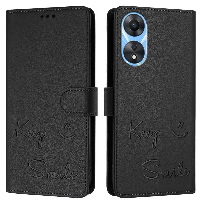 Για OPPO A78 5G Global / A1X 5G Χαμόγελο ανάγλυφο RFID δερμάτινη θήκη τηλεφώνου (Μαύρο)