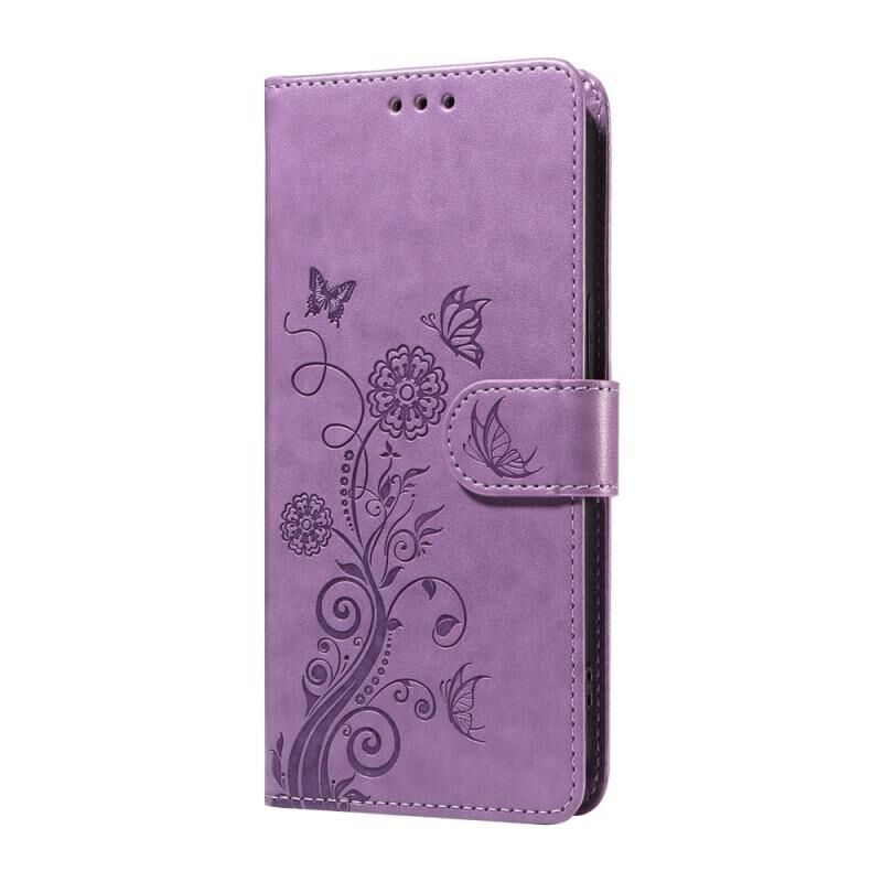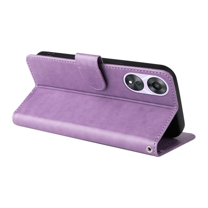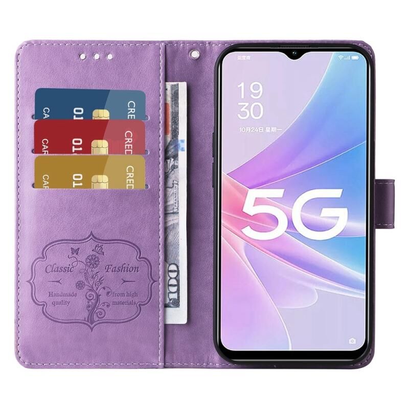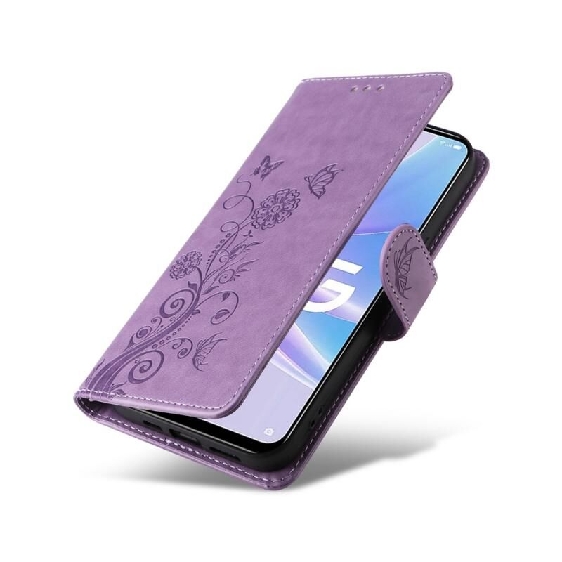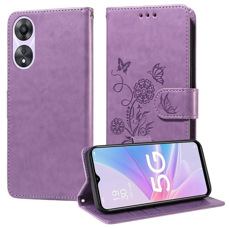 Θήκη τηλεφώνου από δέρμα με ανάγλυφα σχέδια πεταλούδας και λουλουδιών για OPPO A78 5G Global / A58x 5G / A1 Active (Μωβ)